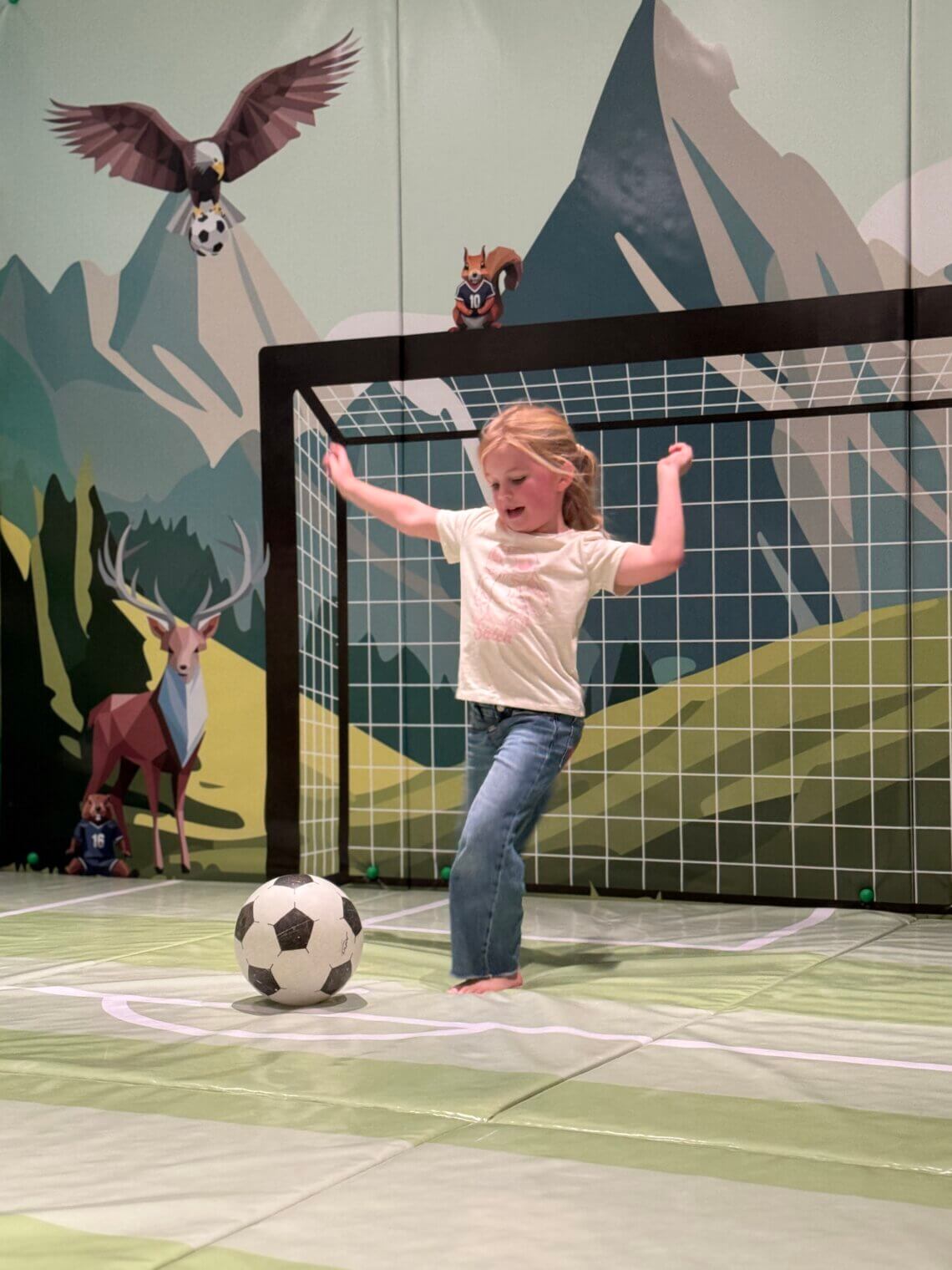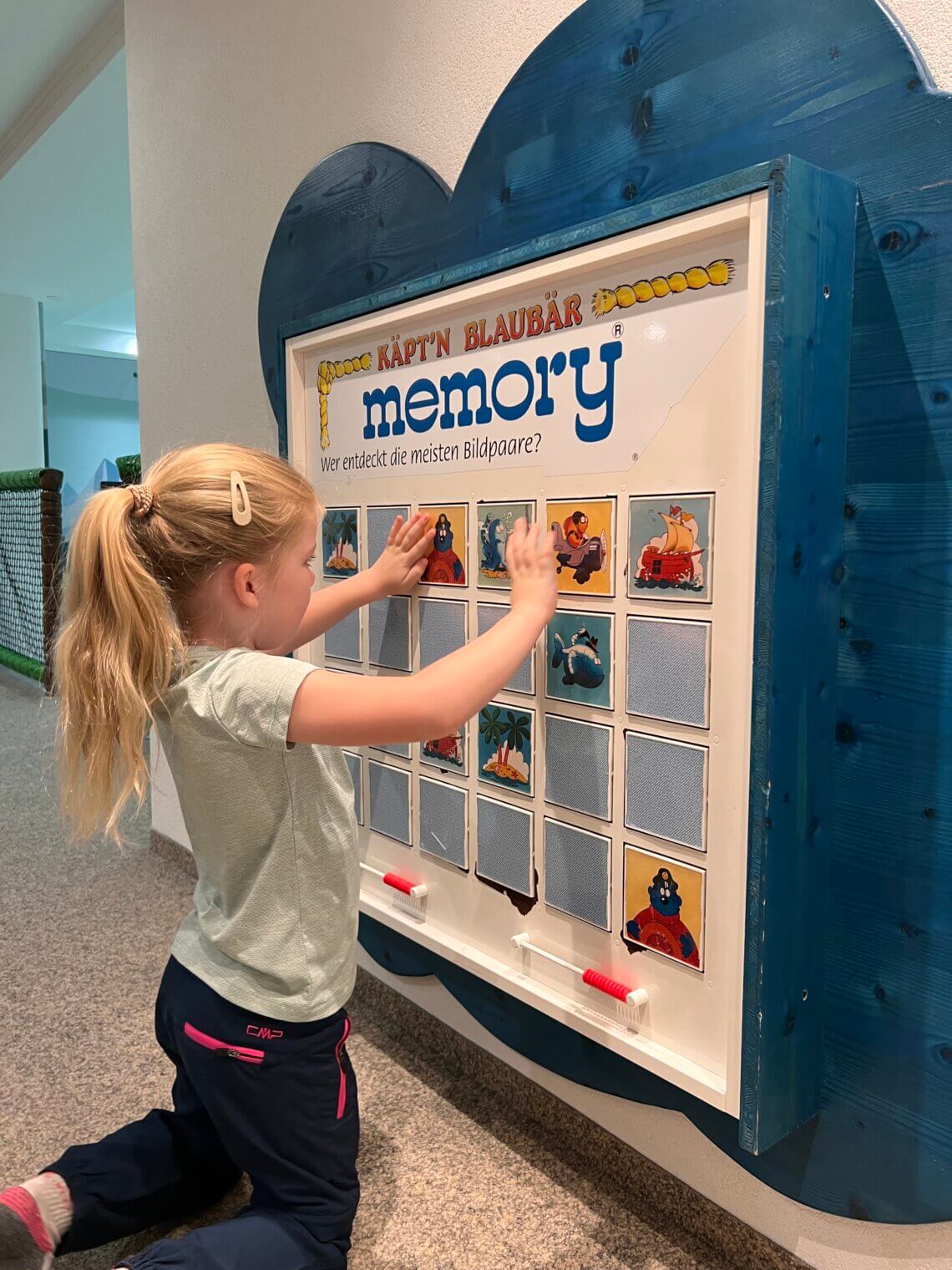 De check-in verloopt voorspoedig en we krijgen onze kamersleutel. De auto kunnen we parkeren in de ondergrondse parkeergarage waaruit we makkelijk, binnendoor naar onze kamer kunnen. ”Kijk mama!” roept onze dochter enthousiast. Tijdens de wandeling vanuit de parkeergarage naar de kamer zien we al een grote speelkamer met indoor voetbalveldje. ”Die gaan we straks bekijken!”