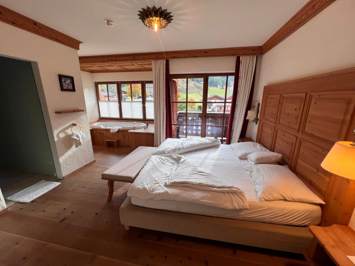 De kinderkamer heeft een eigen badkamer en in onze slaapkamer is een royaal bubbelbad met uitzicht op de bergen, wat een luxe! Er zijn meerdere balkons en in de winter kijk je uit over het kinderland wat vrijwel meteen tegenover het hotel ligt. Net zoals de gondel die je naar het grote(re) skigebied brengt.