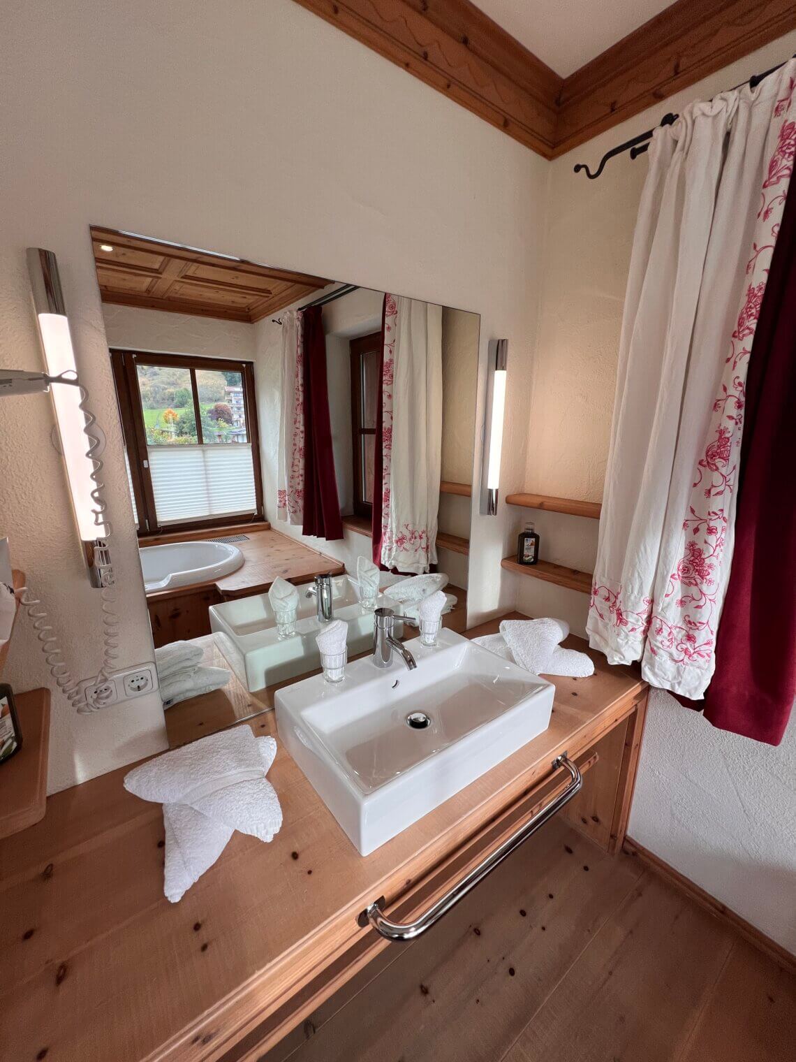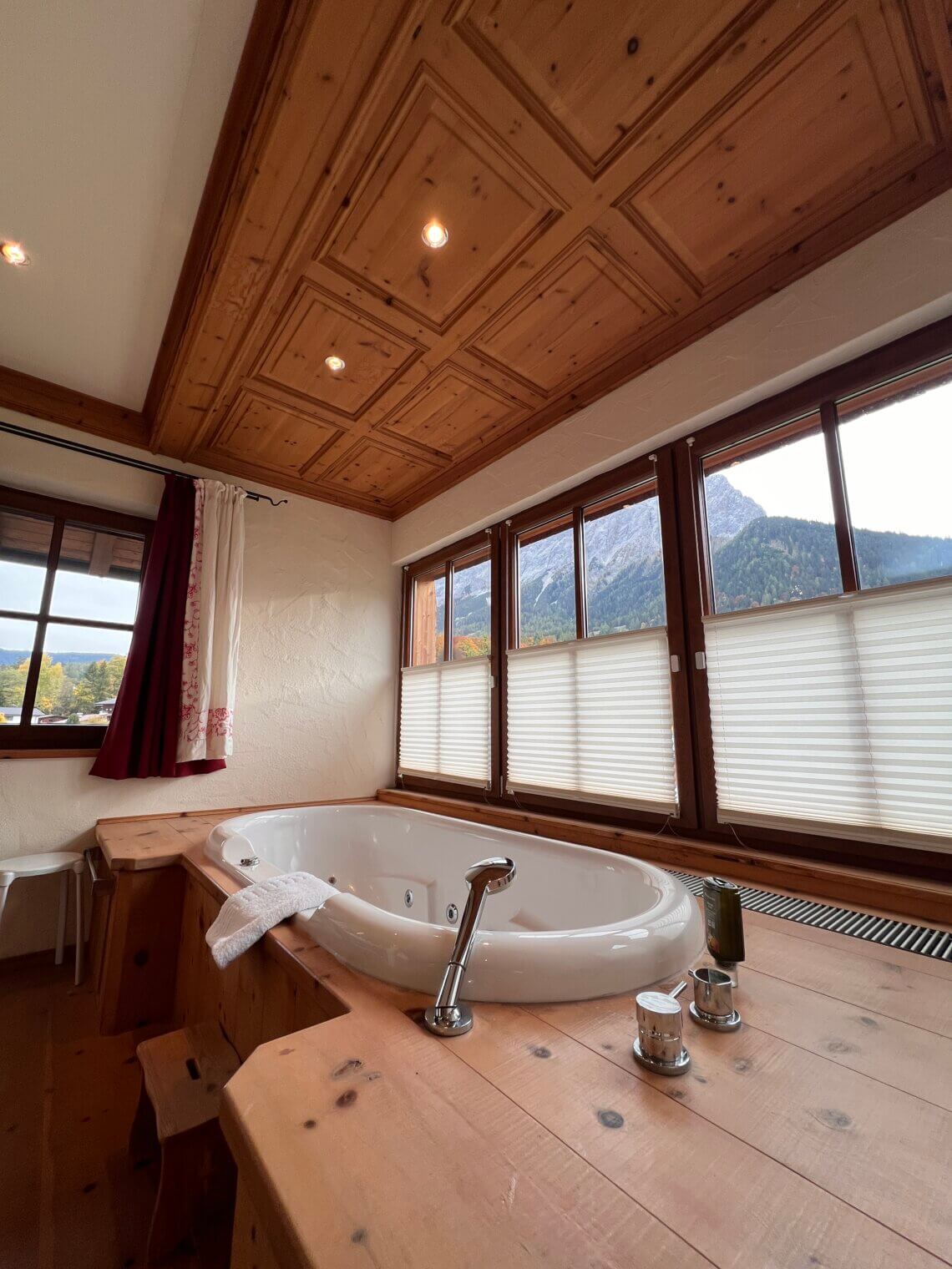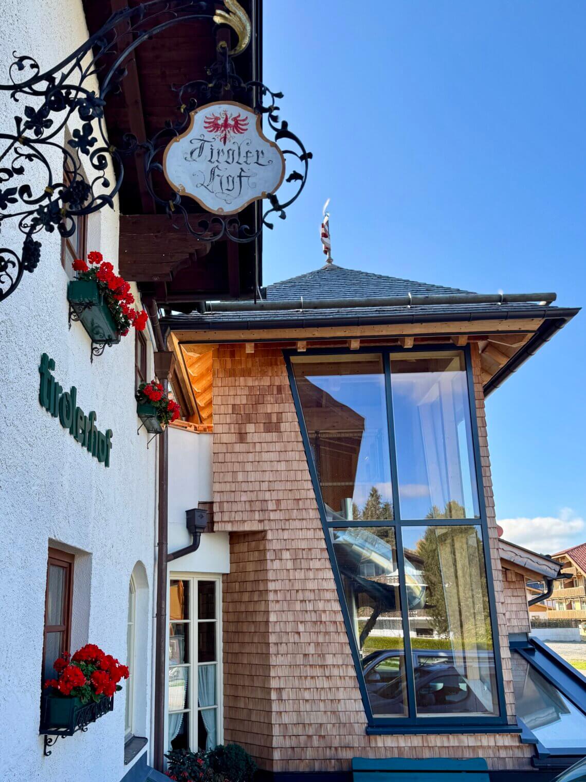 Na een autorit van zo’n kleine 9 uur komen we aan bij Tirolerhof Ehrwald. We zijn erg benieuwd, want er waren maar weinig recente reviews te vinden. Bij binnenkomst worden we meteen zeer gastvrij verwelkomd. Ik kijk om me heen en zie een traditionele, Oostenrijkse inrichting: warm, sfeervol en veel hout. Het doet meteen gezellig aan.