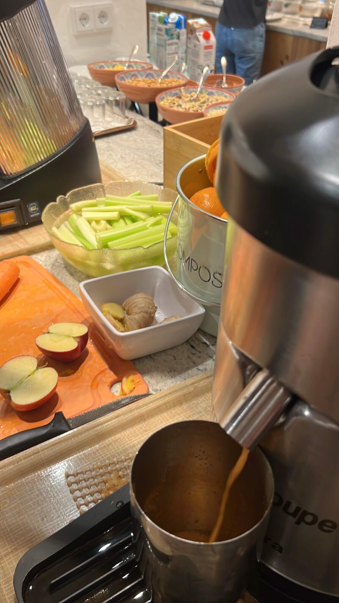Wij komen er niet aan toe, maar naast de sauna zit nog een mooie fitnessruimte met uitgebreide apparatuur. In de zomer is er trouwens nog een yogadeck in de open lucht.
