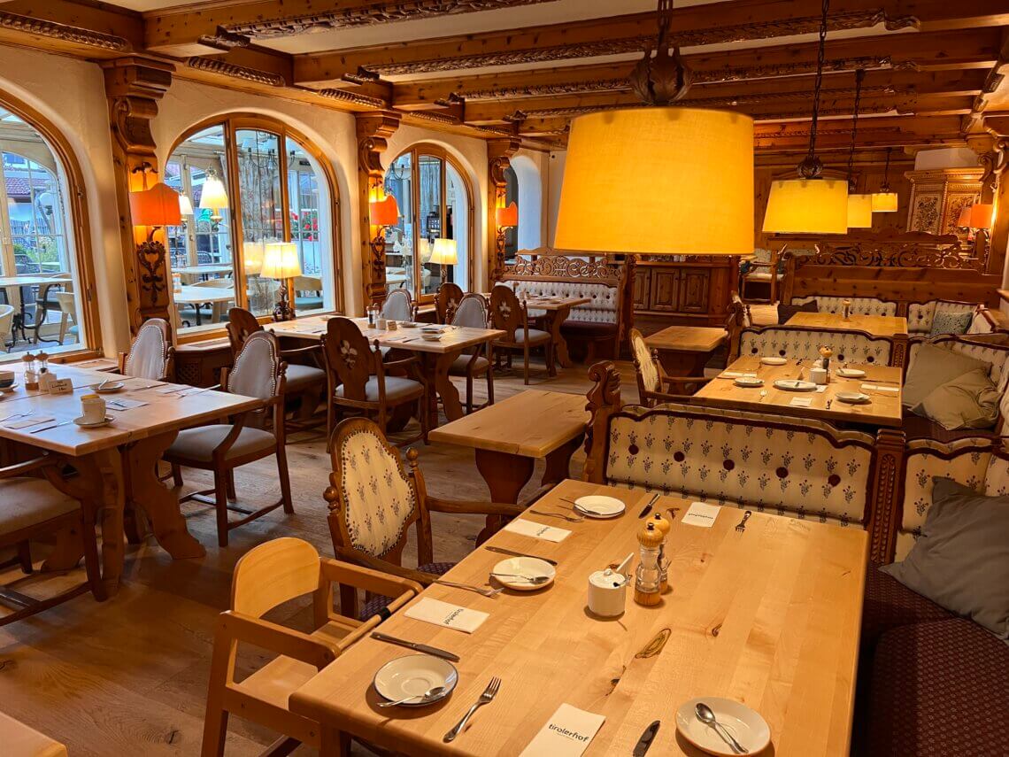 Het restaurant is daarnaast warm en gezellig ingericht met knusse hoekjes, zo zitten wij in de ‘stube’ met grote kachel. De service is ook goed, wij ervaren de bediening als alert en gastvrij.