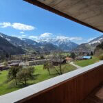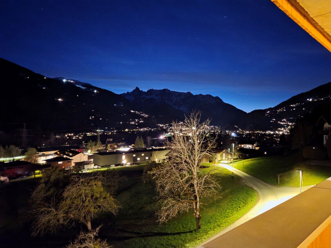 Vanuit de woonkamer kom je op het ruime balkon. Het balkon is gelegen op het zuiden en biedt een fantastisch uitzicht over het dal. Met daarop een eettafel met comfortabele hoekbank en een fijne bank over de lengte van het keukenraam. Volgens L. de ideale chillplek. Tijdens ons verblijf hier hebben wij een fijn lentezonnetje en zijn dan ook veel op het balkon te vinden. Met een drankje genieten van het bergpanorama. Dit uitzicht verveelt toch nooit. Ook in de avond is het dal mooi verlicht.