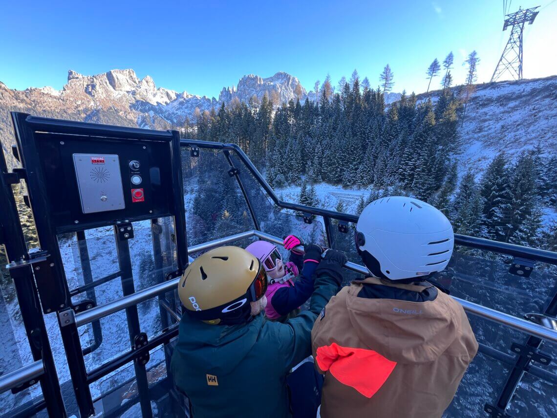 Op het eerste oog lijkt de Tiers-gondel een normale gondel. We stappen in en genieten van het uitzicht door de grote ramen. “Maar waarom gaan we nu heen en weer?” De kids vinden het nog steeds gek.