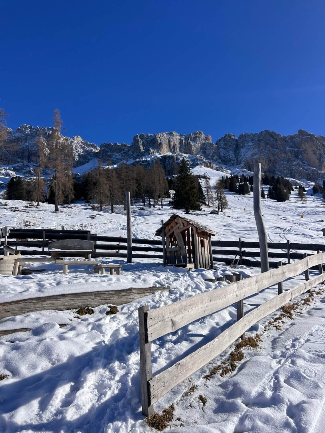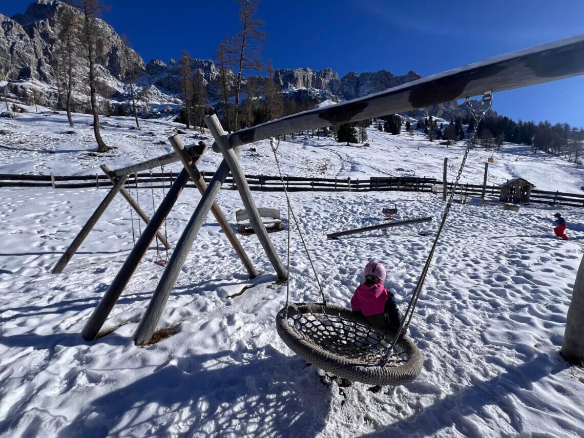 Wij hebben alleen geskied, maar goed te benoemen is dat Carezza ook mooie winterwandelingen heeft. Bijvoorbeeld de wandeling naar de Messnerjoch of Ochsenhütte. We zagen diverse wandelaars die met hun skiënde familieleden gingen lunchen en dan met de slee weer terug gingen (uiteraard alleen over het wandelpad). Bij Carezza kan je ook een aparte wandelpas kopen. Een overzicht van alle winterwandelingen vind je hier op de website van Carezza.