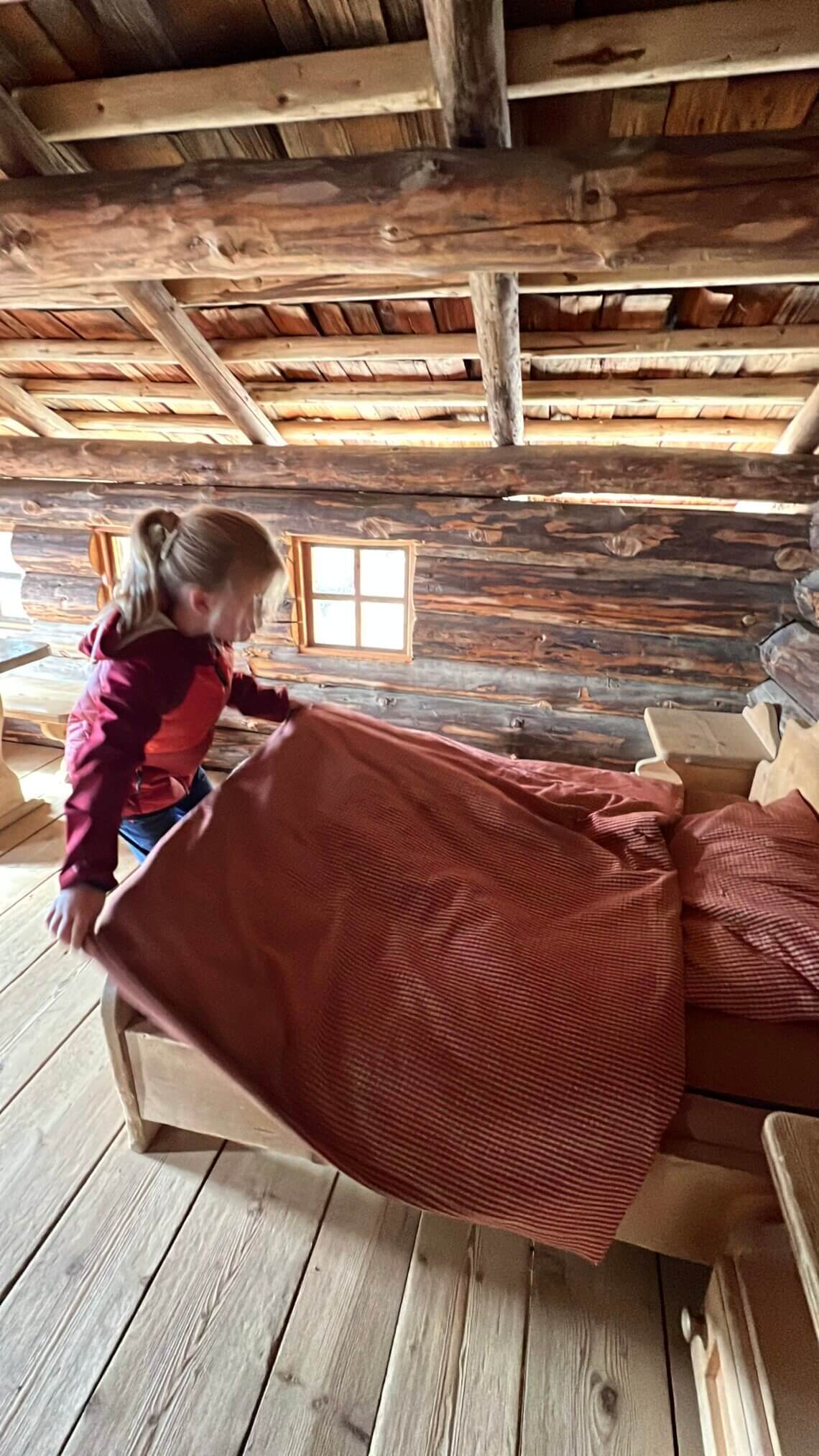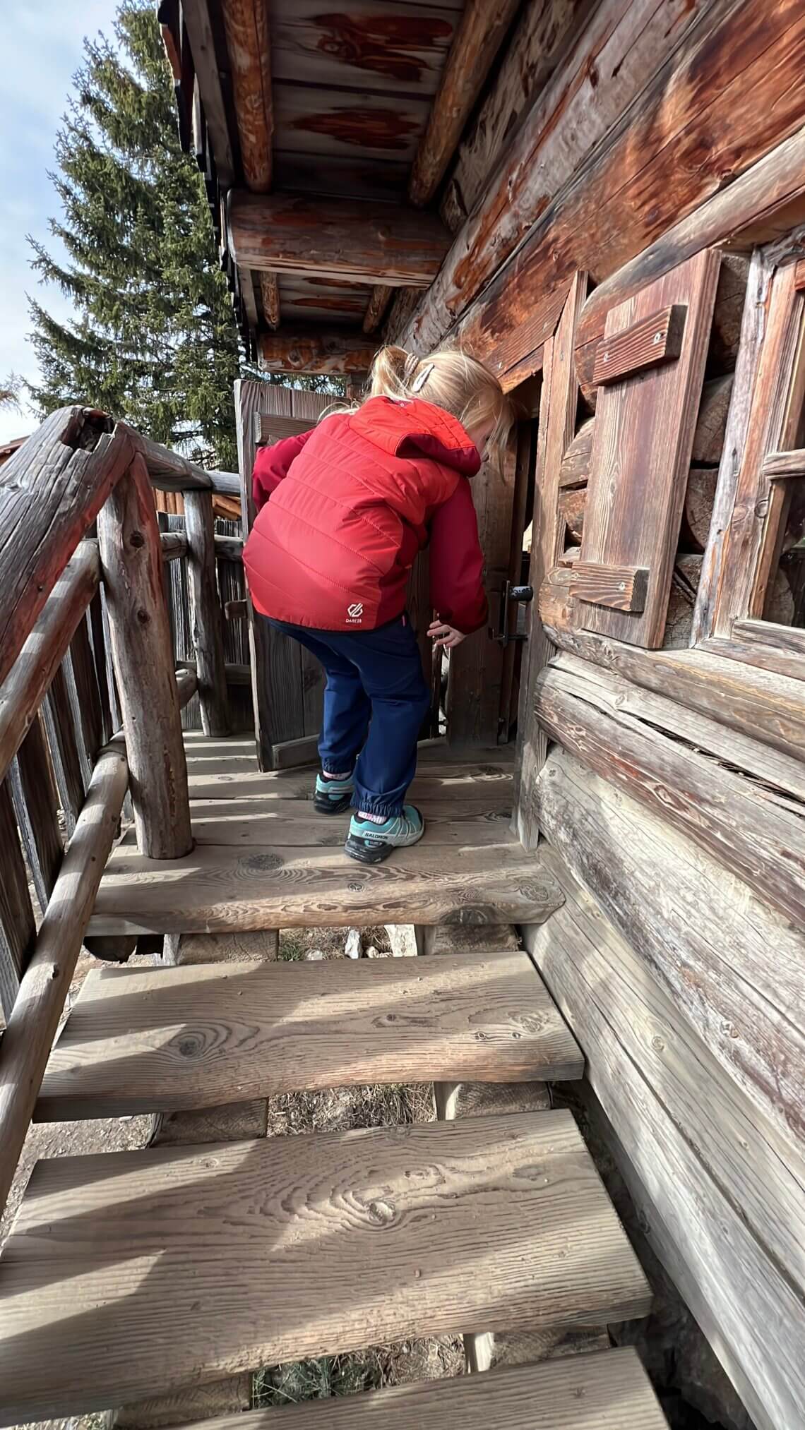 Ook Olper’s Nature Park kennen we nog van een paar jaar geleden, toen waren we er in de zomer. Zodra we de gondel uitstappen zien we de speeltuin en dwergendorp al voor ons liggen. Net als bij Haunold is ook dit dwergendorp prachtig aangelegd met allerlei houten huisjes. Een paar huisje kan je ook in en zijn volledig ingericht, zo mooi en leuk! Via de glijbaan roetsjen we weer naar beneden. Bij het dwergendorp is ook een kinderboerderij met konijnen, geiten en zelfs lama’s.