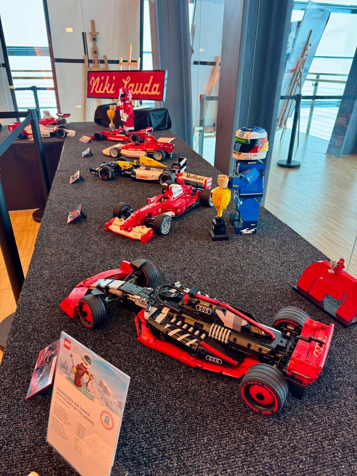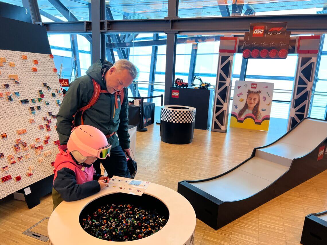 We zijn onder de indruk en pakken snel de beplakte LEGO® gondel naar boven. Hier komen we uit bij Bergrestaurant Pardorama. Dit restaurant bestaat uit meerdere verdiepingen waarbij de bovenste verdieping een enorme LEGO® tentoonstelling is. Zo zijn er tal van imposante LEGO® bouwwerken waaronder vele (oude) formule 1 auto’s en circuits.