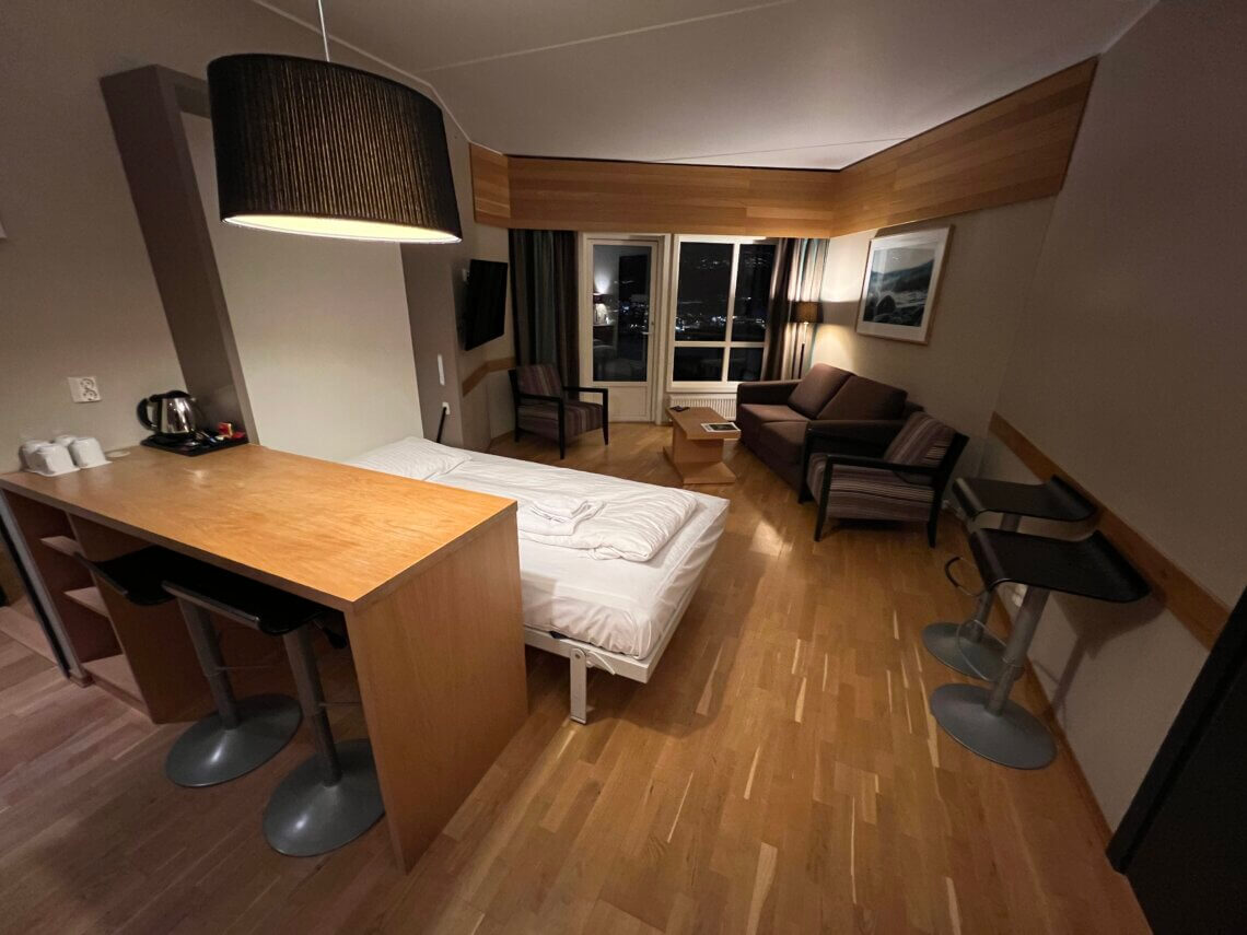 Ik verblijf in het Radisson Blu Resort Trysil, direct ski-in/ski-out aan de zuidzijde van Trysilfjellet. Het is een groot en luxe hotel met moderne kamers en een warme, gezellige sfeer.