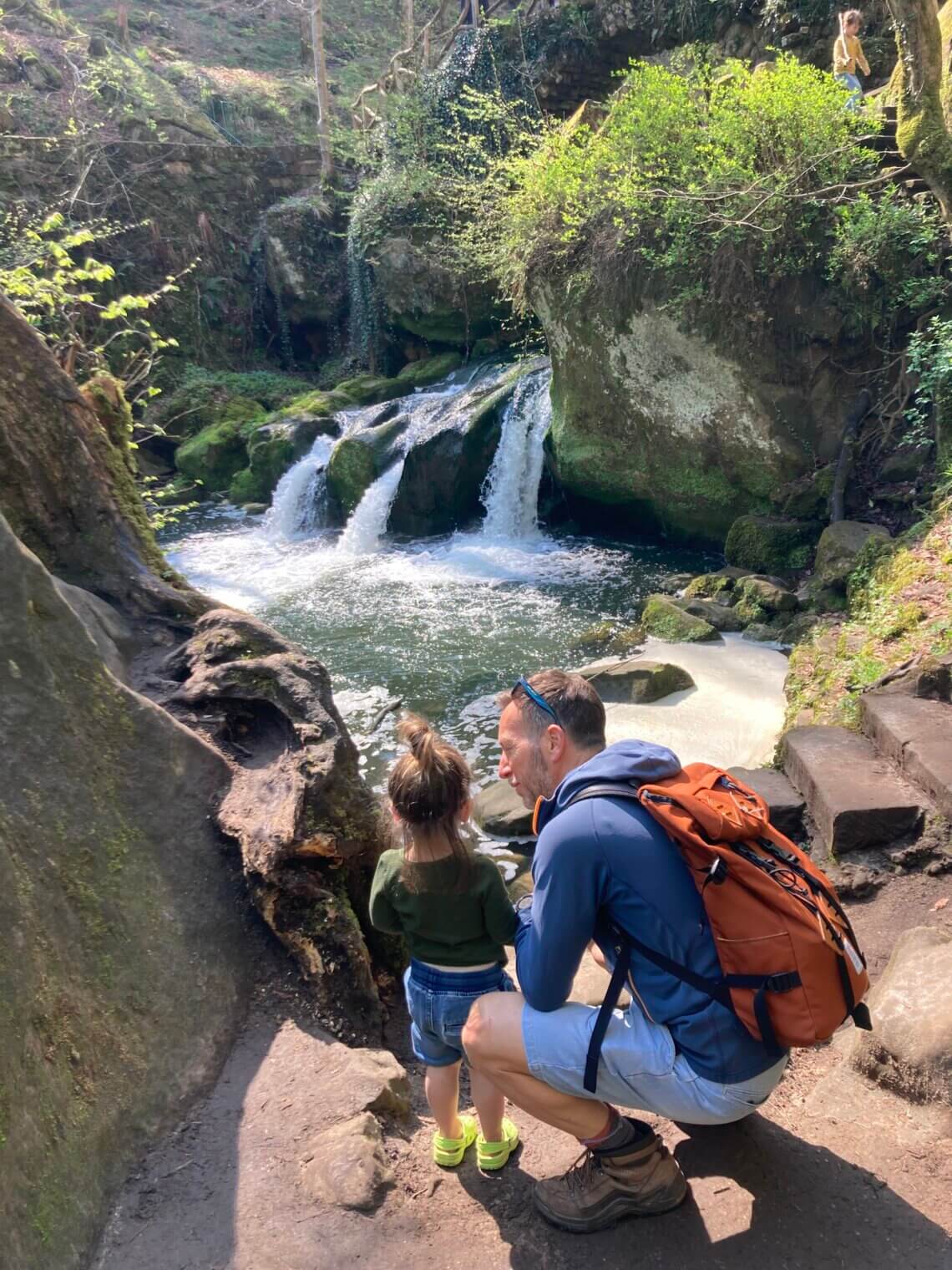 Op onze 2e dag strepen we braaf de must-do-highlights af in deze regio. De Schiessentumpel en Kallektuffquell zijn trekpleisters van het Mullerthal. Eerlijk is eerlijk, beide natuurverschijnselen zijn inderdaad erg mooi en hadden we niet willen missen. Een tip is om het plaatsje Mullerthal voorbij te rijden (want de meeste toeristen lopen vanuit daar naar de Schiessentumpel) en precies tussen de Schiessentumpel en de Kallektuffquell te parkeren (een openbare gratis parkeerplaats tref je direct aan de doorgaande weg). Als je niet te laat in de ochtend komt, kun je nog prima een parkeerplekje uitzoeken.