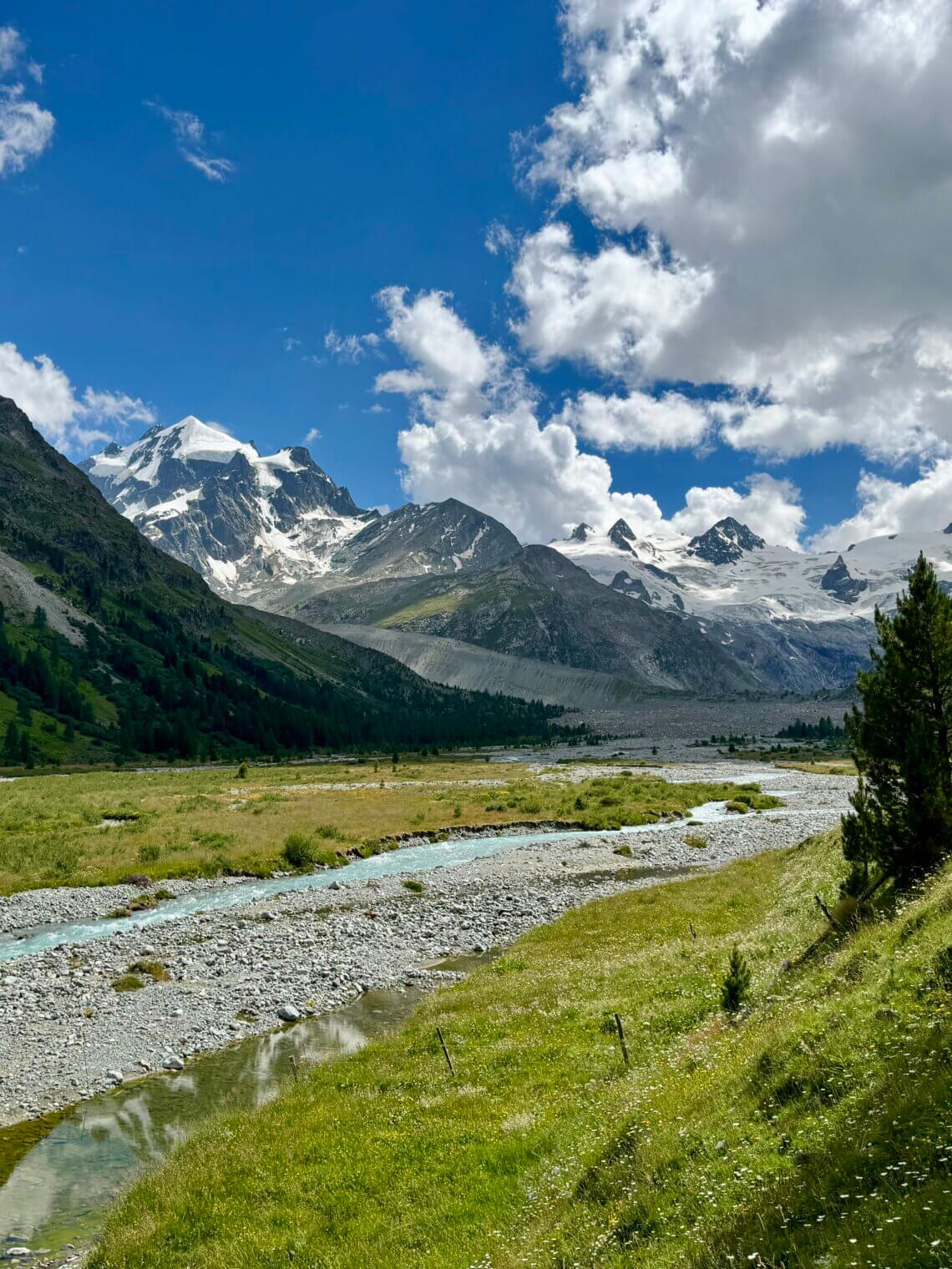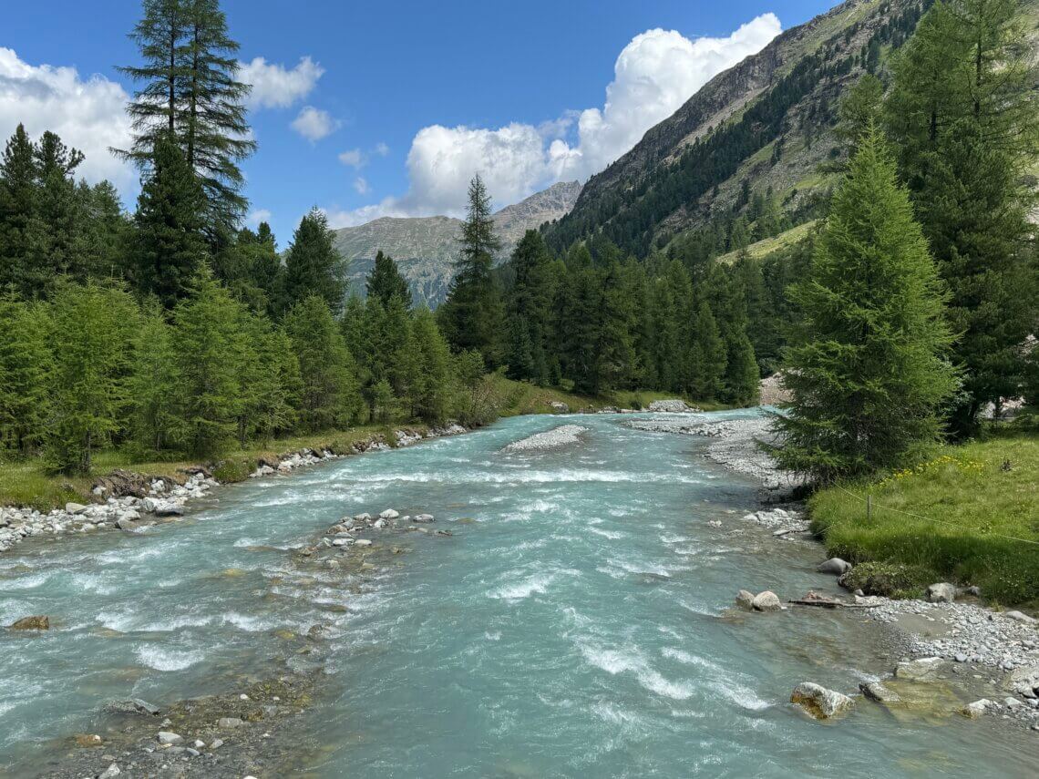 Na ingecheckt te hebben op de camping fiets ik naar Pontresina. Vooraf heb ik gelezen dat er tal van goede gravelpaden zijn, de reden dus dat ik mijn mountainbike mee heb. Het is een klein stukje fietsen van de camping naar Pontresina door een overigens prachtige omgeving. Ideaal, want zo kan ik de auto mooi laten staan.