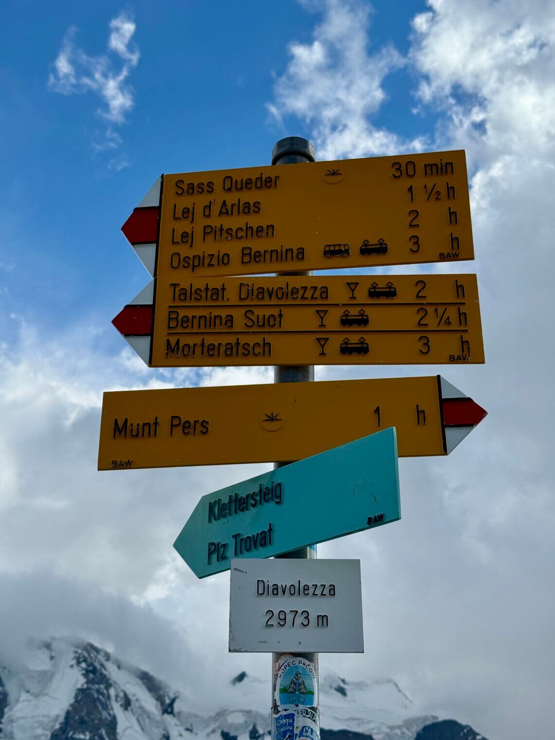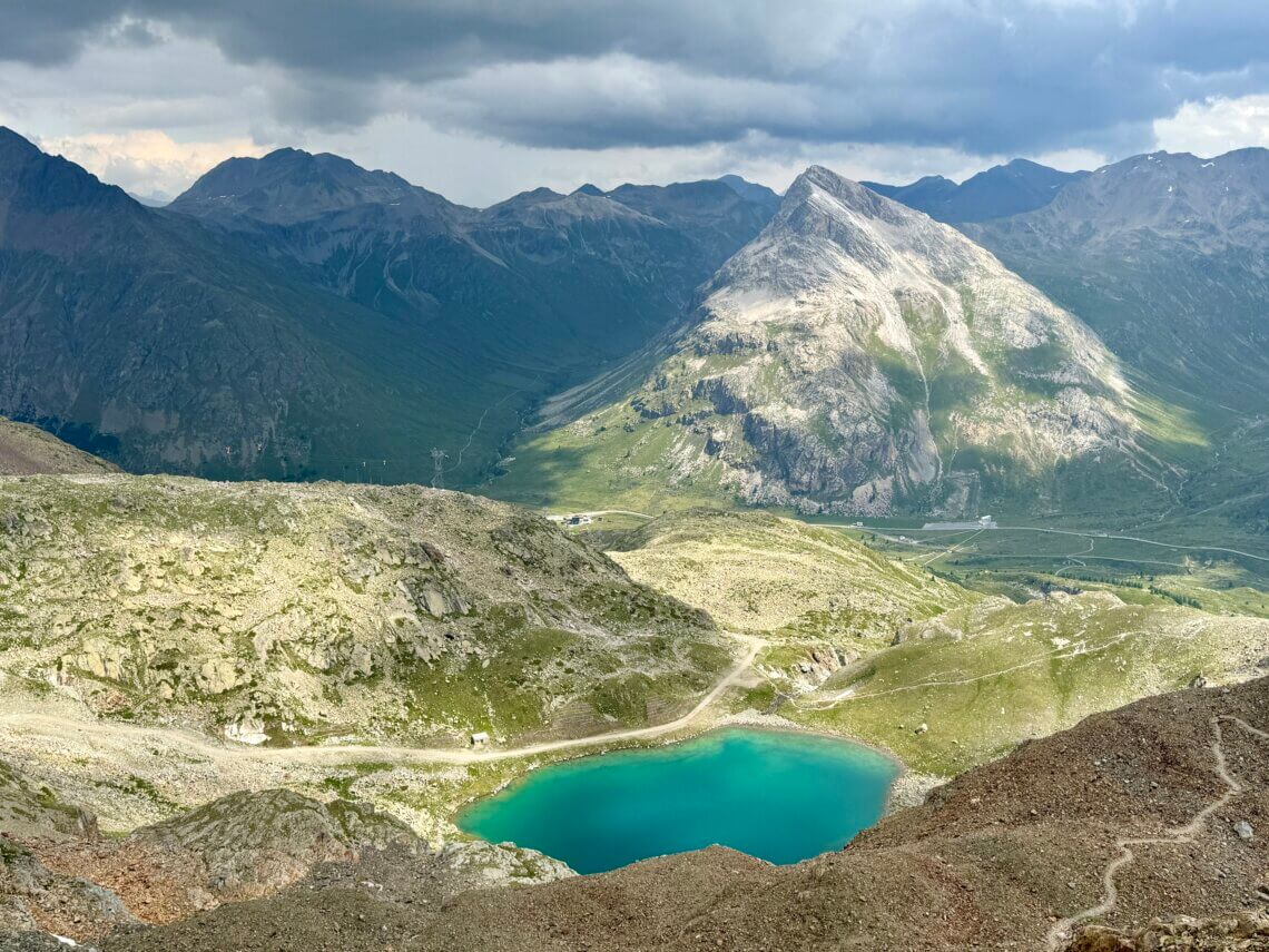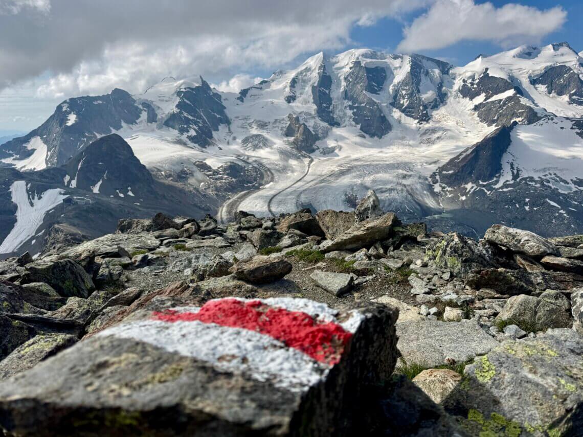 Na een goede nacht op mijn ‘acclimatiseringsplek’ maak ik ’s ochtends nog een korte wandeling. Ik loop in een kleine 1,5 uur zo’n 2 kilometer naar Munt Pers. Munt Pers ligt zo’n 240 meter hoger dan Berghaus Diavolezza waardoor het toch een klein klimmetje is. Aan het eind heb ik een prachtig panoramisch uitzicht.