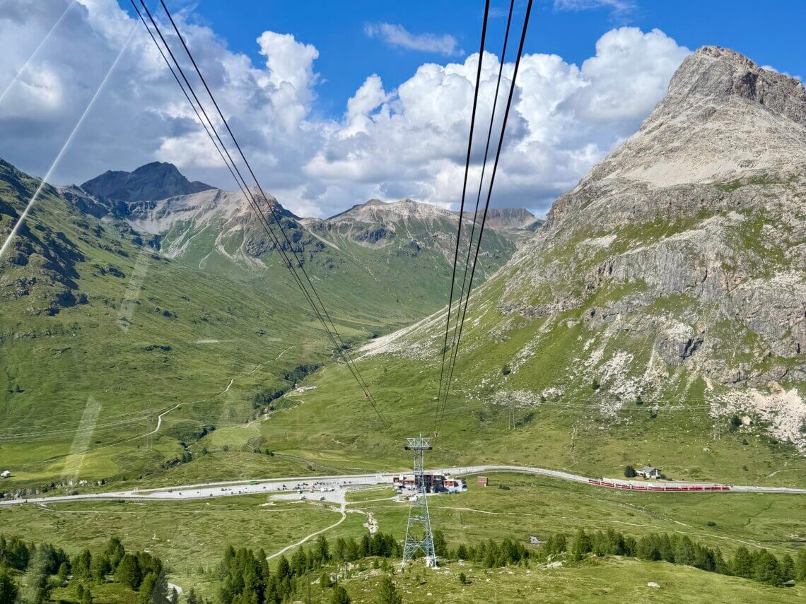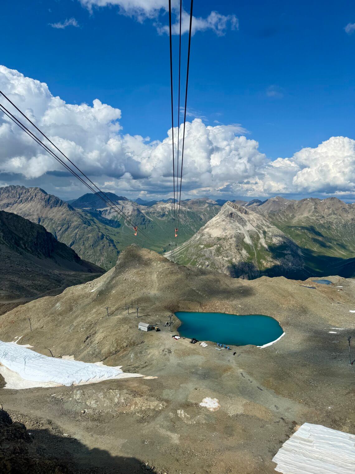 Met een trail in Oostenrijk in mei in de benen en verder vooral trainingskilometers in Nederland lijkt het me goed om eerst even aan de hoogte te wennen voordat ik aan de trail begin. In het Oberengadin ben ik omgeven met hoge bergtoppen, sommige meer dan 4.000 meter hoog. Mijn reisdag stopt op de parkeerplaats waar de gondel naar Diavolezza gaat. Ik koop een single ticket en ben blij dat ik na de rit van vandaag niet omhoog hoef te lopen.