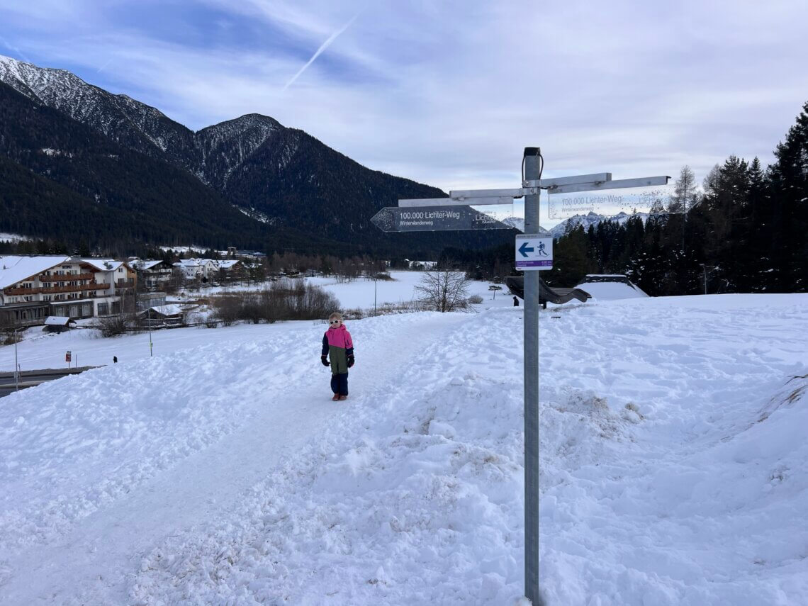 Liever niet skiën of sleeën? Je kunt in en rondom Seefeld ook prachtig winterwandelen. Er is maar liefst 142 kilometer aan winterwandelpaden en 245 kilometer aan langlaufpaden. Zo zien we rondom Leutasch meerdere wandelaars maar ook in Seefeld zelf. Aanrader met kids is bijvoorbeeld ook de lichtjeswandeling van een paar kilometer.