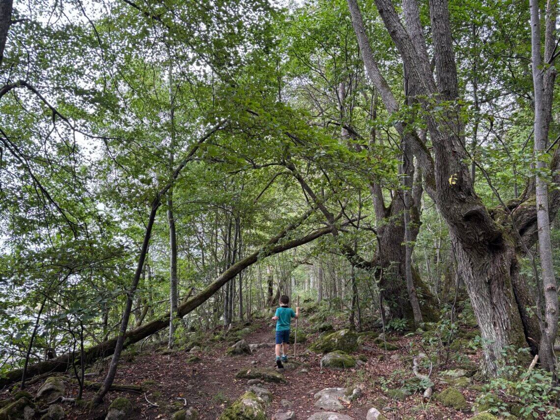 De volgende dag was een kind niet super fit, dus we besluiten niet te gaan wandelen, maar iets rustigers te ondernemen. We zijn geïntrigeerd door de beschrijving van een autokerkhof in het bos nabij Tingsryd. Het Bilkyrkogården Kyrkö Mosse stelt niet teleur. Het is een surreële ervaring. De auto’s zijn decennia geleden achtergelaten en de natuur heeft de naar schatting 150 autowrakken compleet overwoekerd. Je mag er vrij wandelen, maar je moet goed oppassen voor uitstekende scherpe materialen en glasscherven. We lopen zo’n uur gefascineerd tussen de autowrakken, terwijl we bedenken wat het verhaal is van elke verwaarloosde auto. Waarom en door wie werden ze achtergelaten?